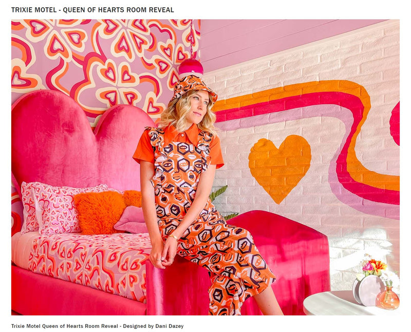 The focal point of this room has to be the hand tufted heart mirror by Tim Eads of Tuft The World that is hanging over the custom heart bed. It brings such a fun element to the room and I am sure it will be a favorite of any guests who stay here.
